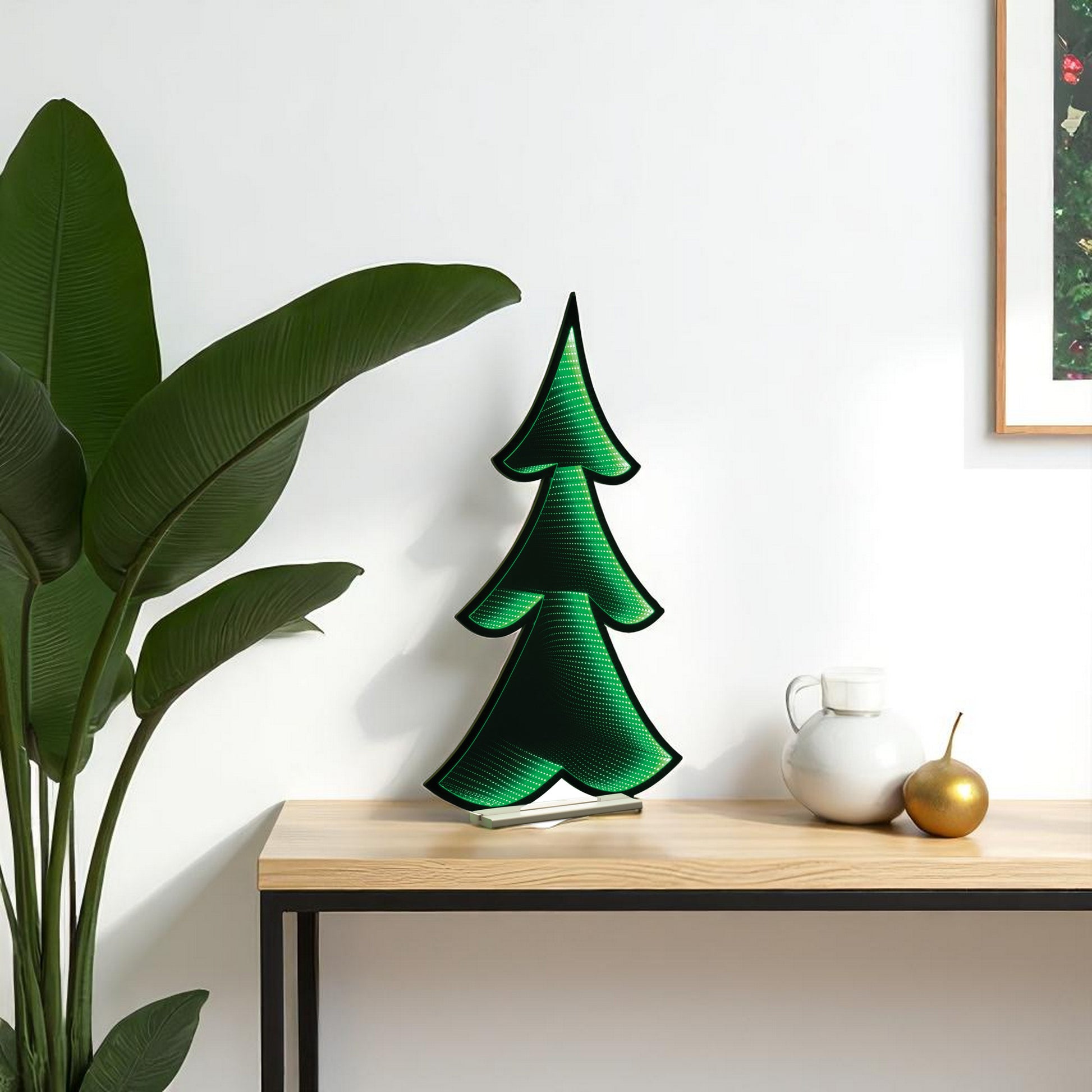 Add some christmas cheer to your space with this 12-inch green acrylic trees christmas christmas tree tabletop sculpture with led. This great accent will bring a sense of earthiness and nature to your space. Led light provides an illuminating effect that adds to the decorative appeal of this special piece. It's a perfect addition for those who love an up-to-the-minute look and feel. 12.00-inch h x 8.50-inch w x 3.00-inch d.