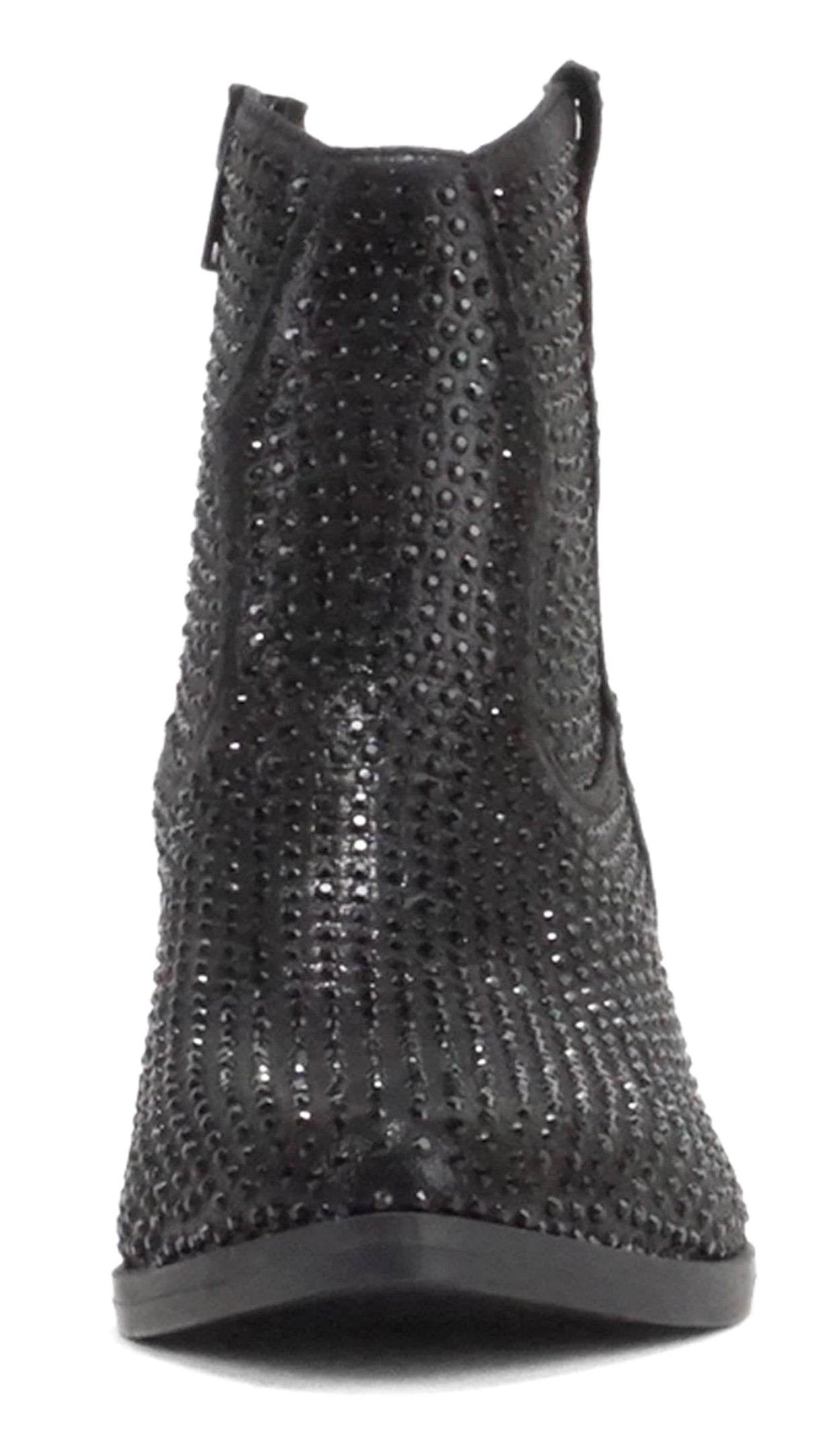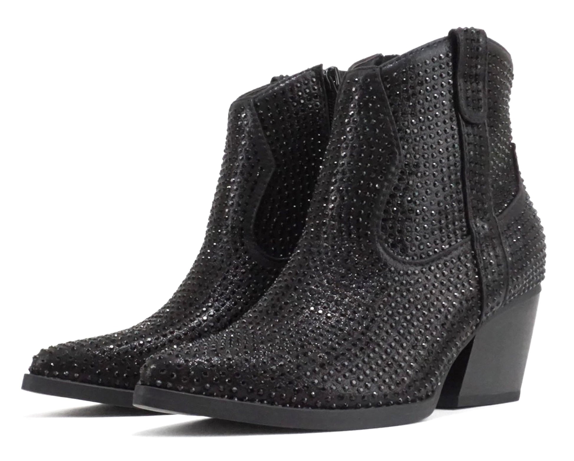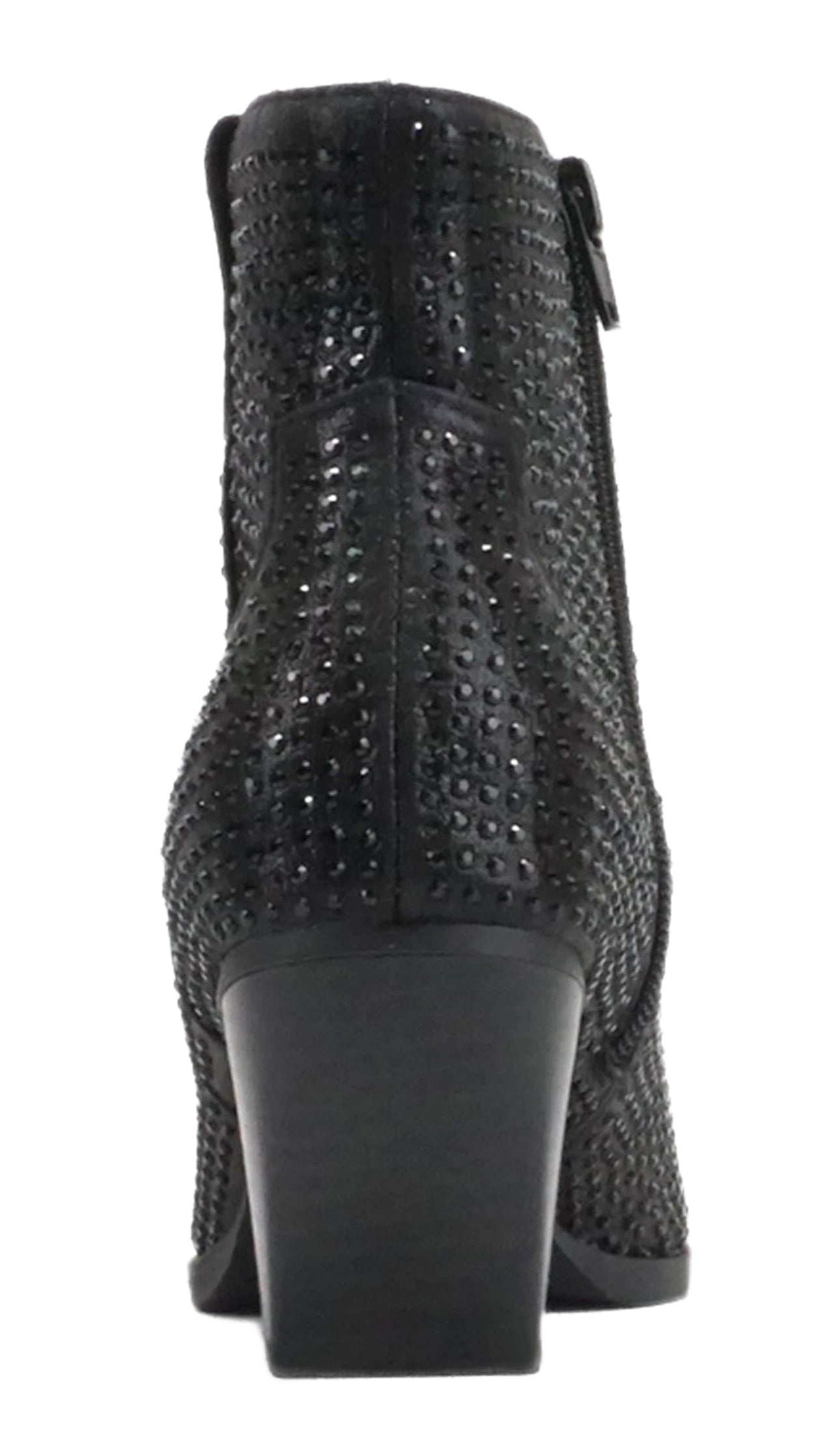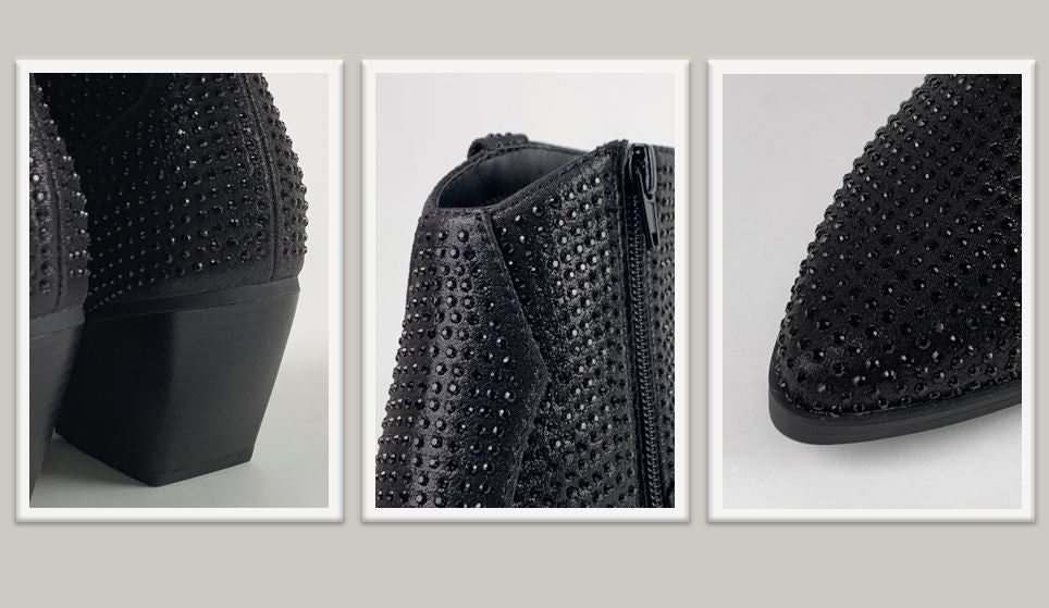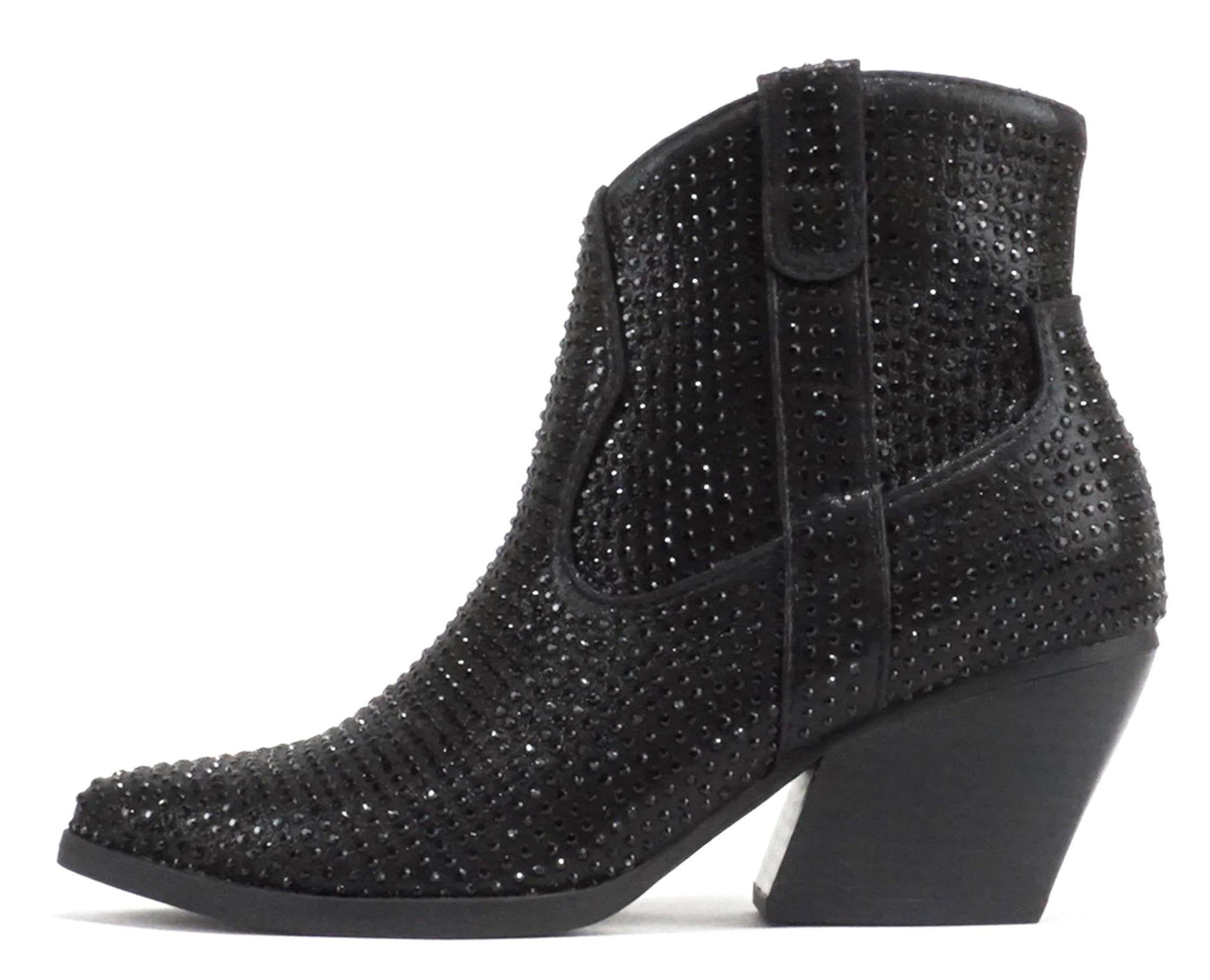 - Soda Women Ankle Boots Pointed Toe Low Heel Rhinestone Bling Short Western Cowboy Booties Side Zipper BREW-S