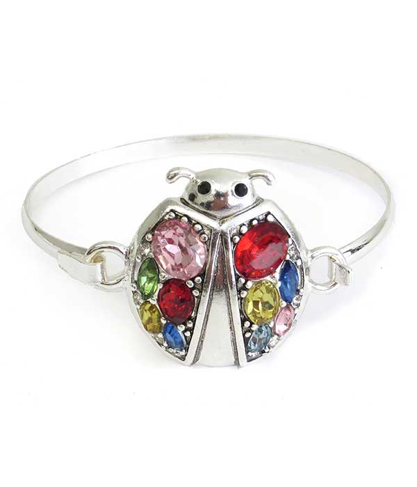 GARDEN THEME CRYSTAL WIRE BANGLE BRACELET - LADYBUG : Size- TH 1 3/8 INCHES DIA 2 1/2 INCHES : Color- ASMT