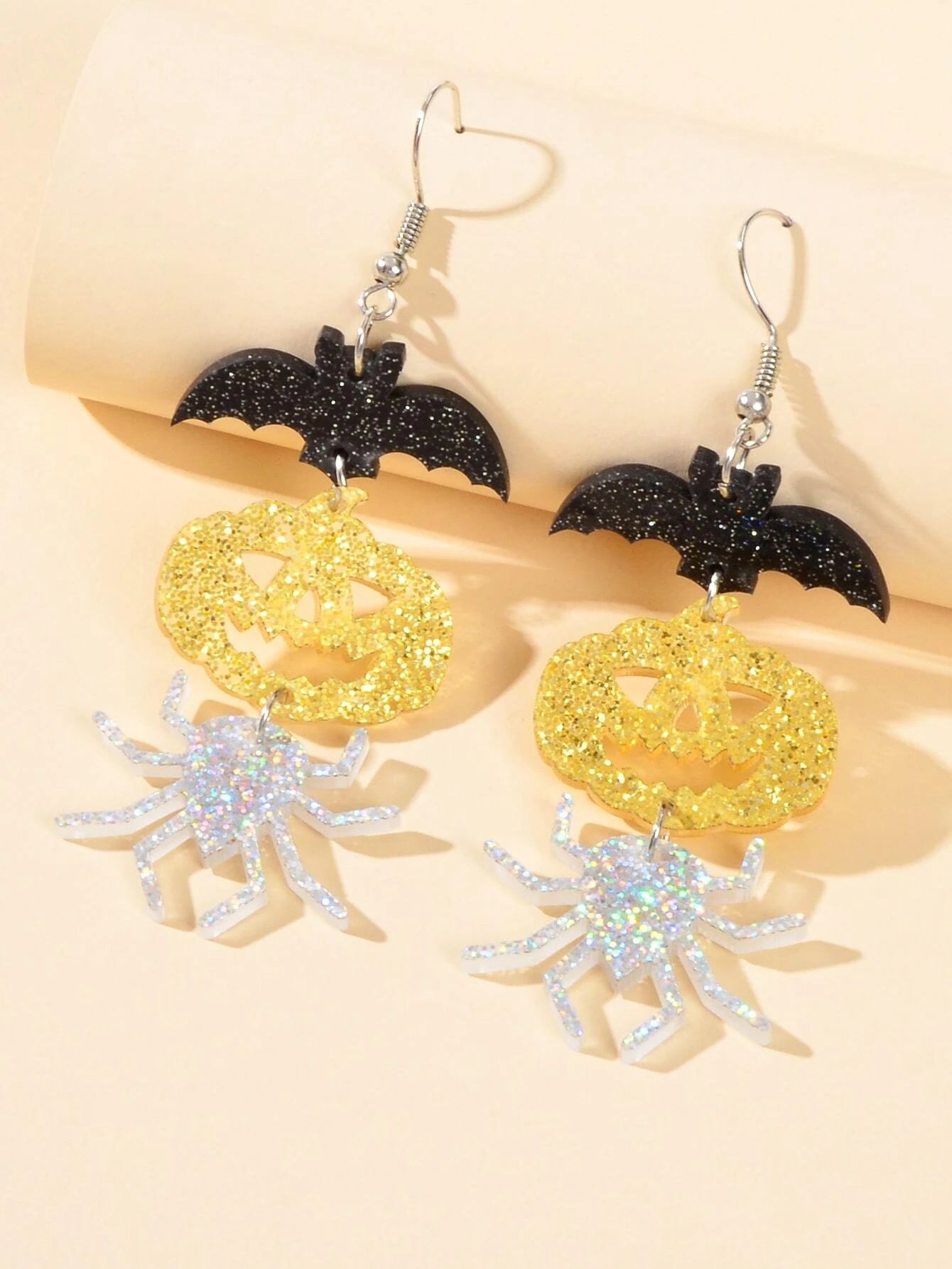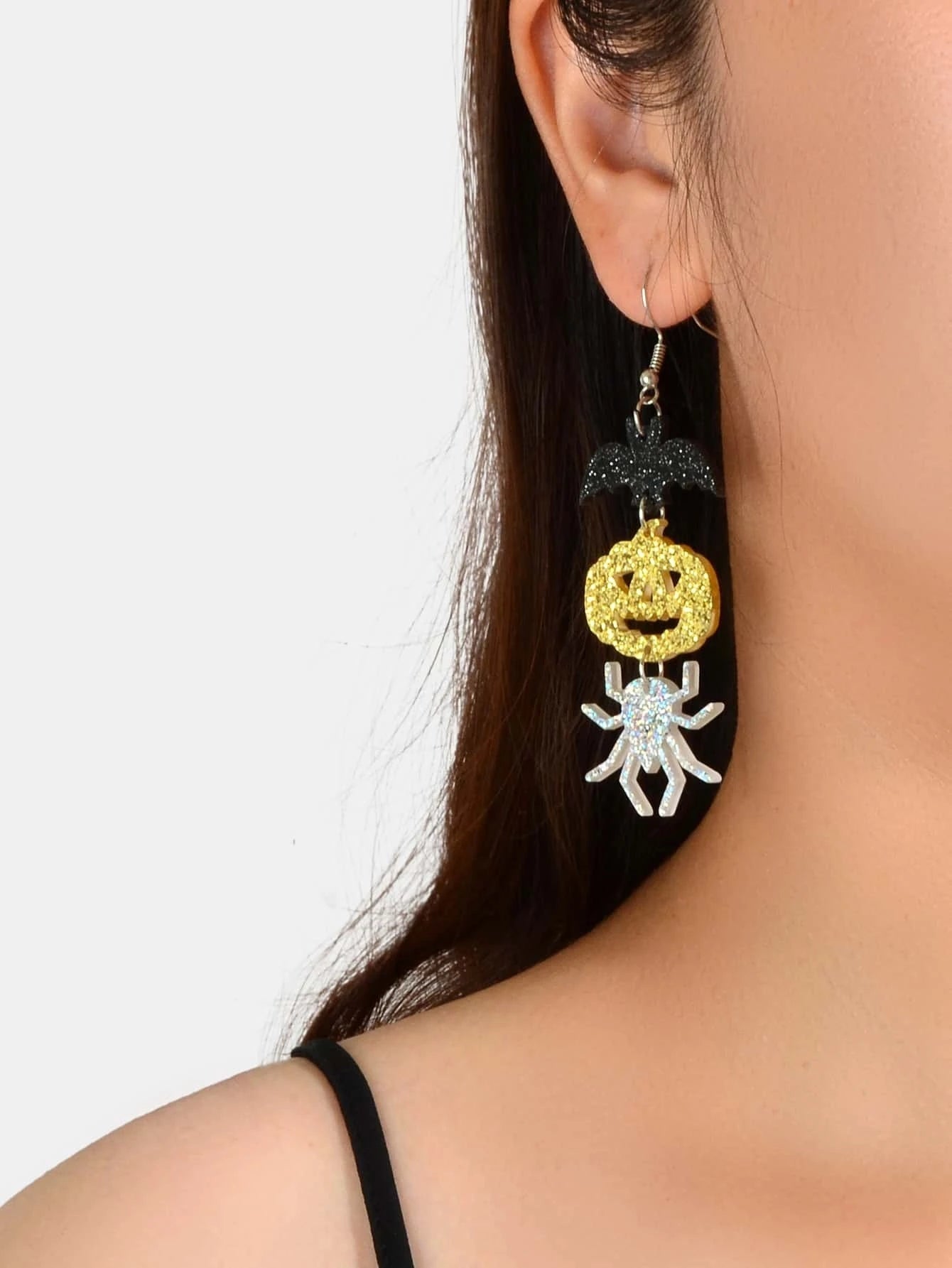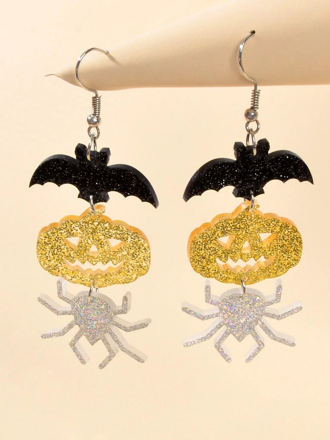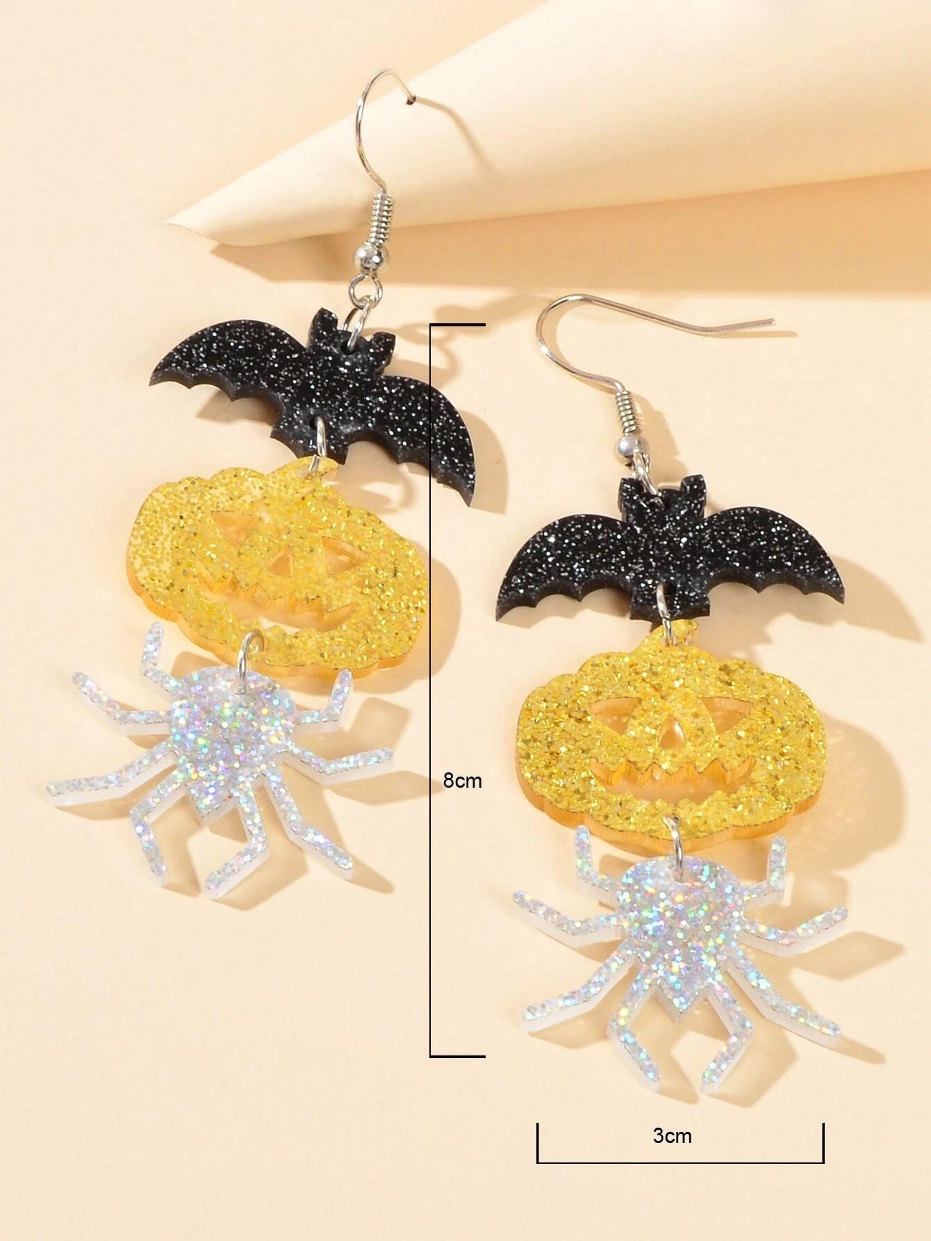 Halloween Gothic Acrylic Black Bat Spider Pumpkin Statement Drop Earrings Party