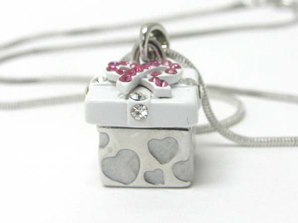 MADE IN KOREA WHITEGOLD PLATING AND METAL EPOXY CRYSTAL STUD MINIATURE GIFT BOX PENDANT NECKLACE