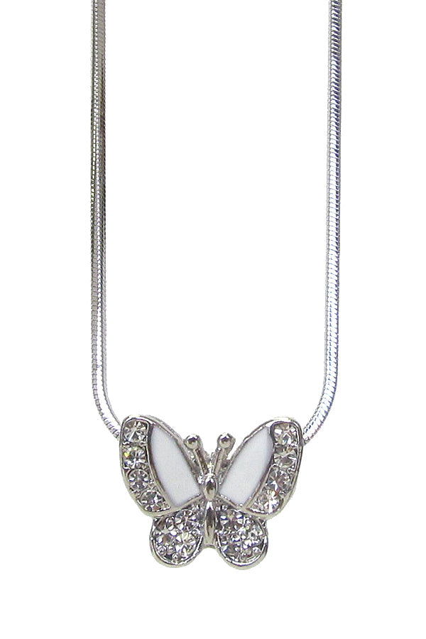 MADE IN KOREA WHITEGOLD PLATING CRYSTAL BUTTERFLY PENDANT NECKLACE