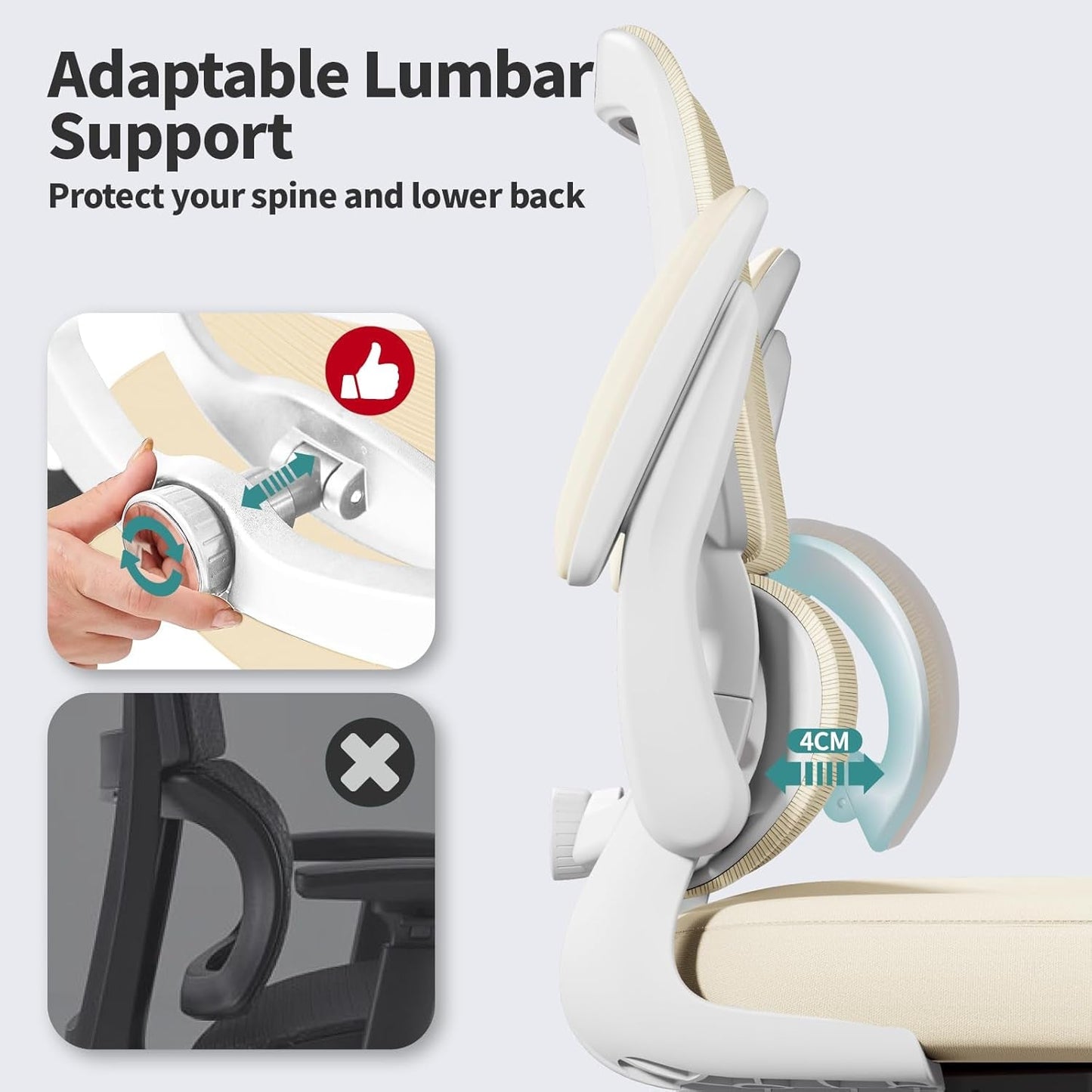 Office Chair - Ergonomic Desk Chair with Adjustable Lumbar Support, Mesh Computer Chair, Executive Chair for Home Office Comfortable Lumbar Support(Beige)
