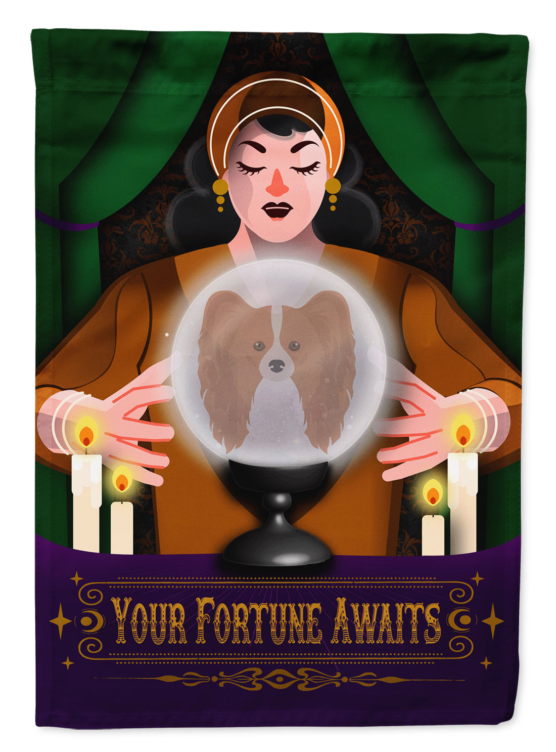Garden Flag featuring breed specific Papillon artwork. Enhance the beauty of your garden, patio, or yard with Caroline's Treasures Decorative Garden Flag, proudly made in the USA. Crafted from two pieces of thick, double-sided polyester fabric, this 2-ply garden flag is designed to withstand various weather conditions, making it water-resistant and weatherproof. Featuring correctly readable words on both sides, this garden flag offers a delightful visual experience from any angle. With its heavier weight, it stands out among other garden flags, ensuring stability and durability even in wind, rain, and snow. Measuring approximately 11 1/4 inches by 15 1/2 inches, this flag allows you to personalize your outdoor decor. It comes with a 1 1/2-inch sleeve sewn in, allowing easy attachment to any standard garden flag stand or garden size porch hanger (sold separately). Make a statement in your outdoor space with Caroline's Treasures Decorative Garden Flag, a vibrant and high-quality flag that adds color and personality to your surroundings. Proudly made in the USA, it's a symbol of quality craftsmanship and attention to detail.