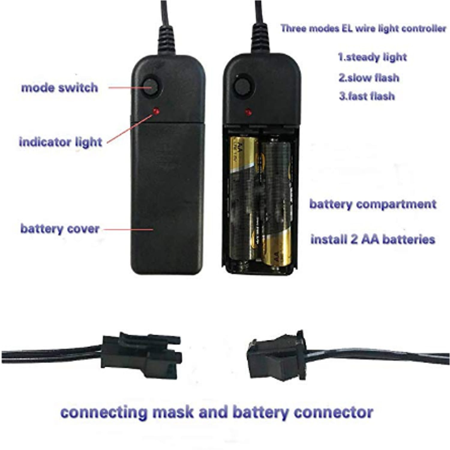 Press the button on the battery pack to change the EL masks to light in any one of three modes: steady, slow flash and fast flash