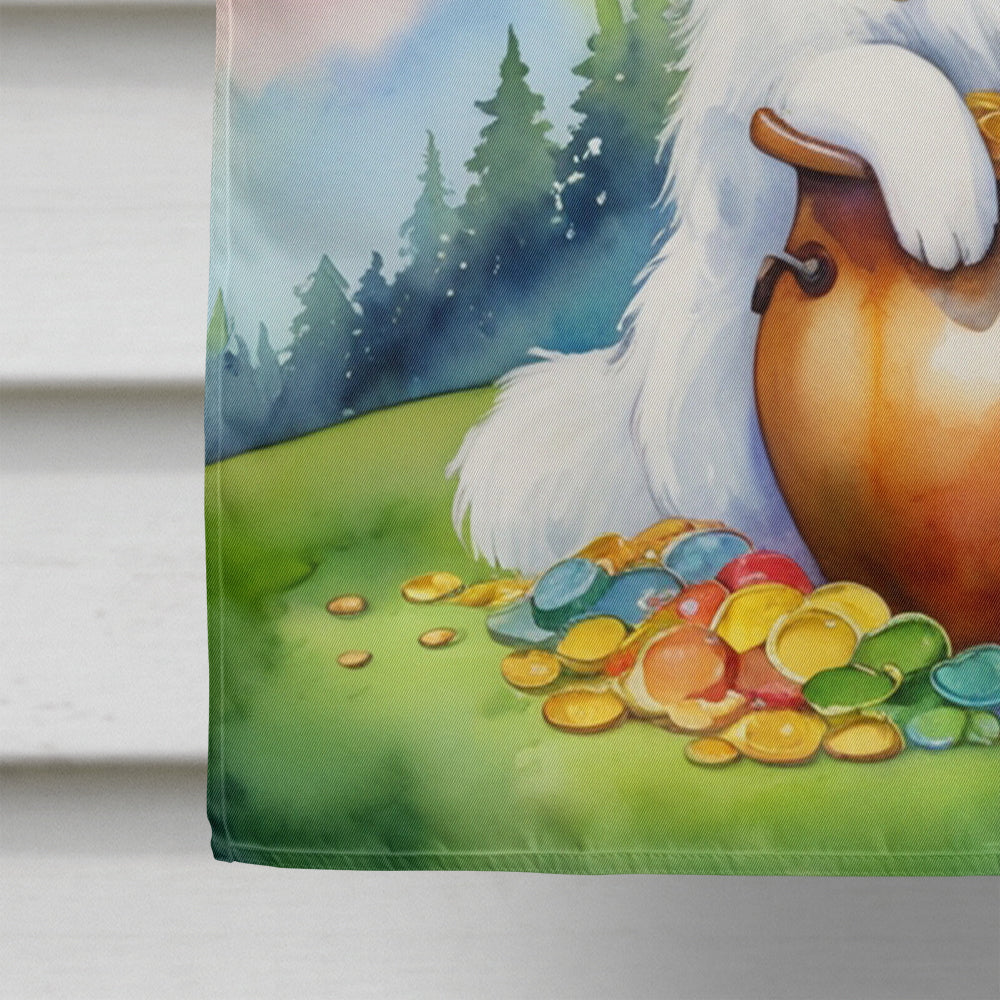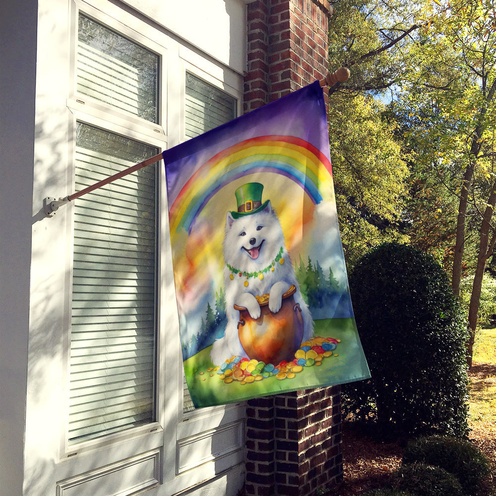 House Flag featuring breed specific Samoyed artwork. Celebrate St Patrick's Day with this St Patrick's Day Large Flag. Presenting our Heavy Duty Polyester House Size Decorative Sleeve Pole Flag, a vibrant addition to enhance the aesthetic appeal of your home. This large decorative flag, measuring approximately 28 x 40 inches, offers ample coverage and visibility. Each flag is meticulously sewn and made individually, ensuring a unique piece that may slightly vary in size. It's a sleeve pole flag, designed to fit a standard decorative flag pole effortlessly. Please note that the flag pole and bracket are not included and should be purchased separately. What sets our flag apart is its dual-sided print. The design is mirrored on both sides of the fabric, allowing for uniform visibility regardless of the angle. Printed in full color, our flag showcases vibrant hues that truly stand out. To ensure lasting vibrancy and durability, the dyes are heat-set into the fabric. This ensures your flag remains bright and captivating through various weather conditions. Elevate the look of your home with our Heavy Duty Polyester House Size Decorative Sleeve Pole Flag!
