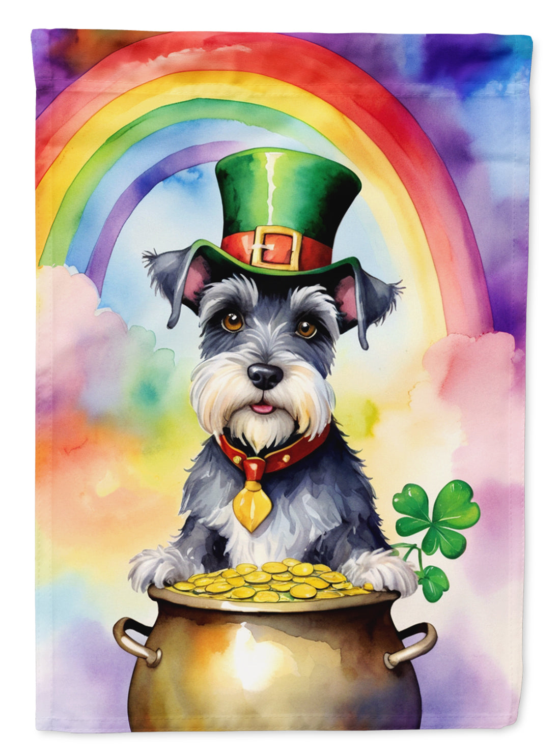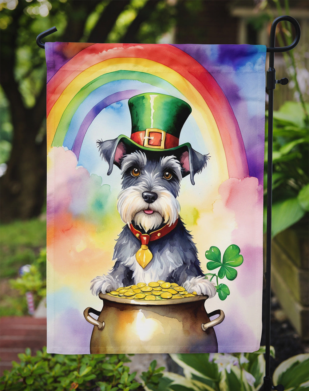 Garden Flag featuring breed specific Schnauzer artwork. Celebrate St Patrick's Day with this St Patrick's Day Garden Flag. Enhance the beauty of your garden, patio, or yard with Caroline's Treasures Decorative Garden Flag, proudly made in the USA. Crafted from two pieces of thick, double-sided polyester fabric, this 2-ply garden flag is designed to withstand various weather conditions, making it water-resistant and weatherproof. Featuring correctly readable words on both sides, this garden flag offers a delightful visual experience from any angle. With its heavier weight, it stands out among other garden flags, ensuring stability and durability even in wind, rain, and snow. Measuring approximately 11 1/4 inches by 15 1/2 inches, this flag allows you to personalize your outdoor decor. It comes with a 1 1/2-inch sleeve sewn in, allowing easy attachment to any standard garden flag stand or garden size porch hanger (sold separately). Make a statement in your outdoor space with Caroline's Treasures Decorative Garden Flag, a vibrant and high-quality flag that adds color and personality to your surroundings. Proudly made in the USA, it's a symbol of quality craftsmanship and attention to detail.