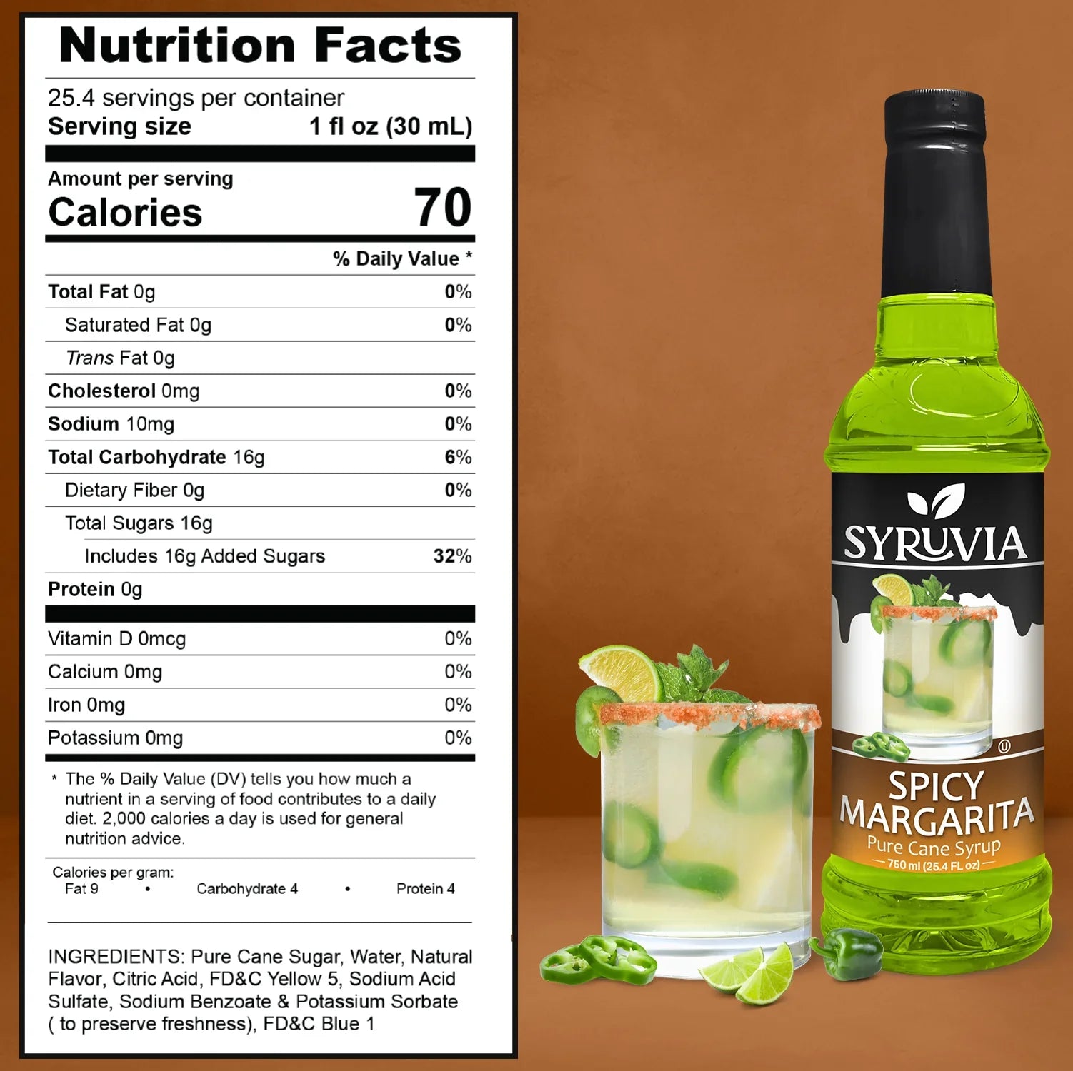 - Paradise in a Bottle: Add a burst of Spicy Margarita flavor to your favorite cocktails and drinks with Syruvia Spicy Margarita Syrup, a kosher and gluten-free syrup that makes drinking and mixing a breeze.